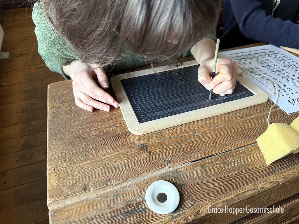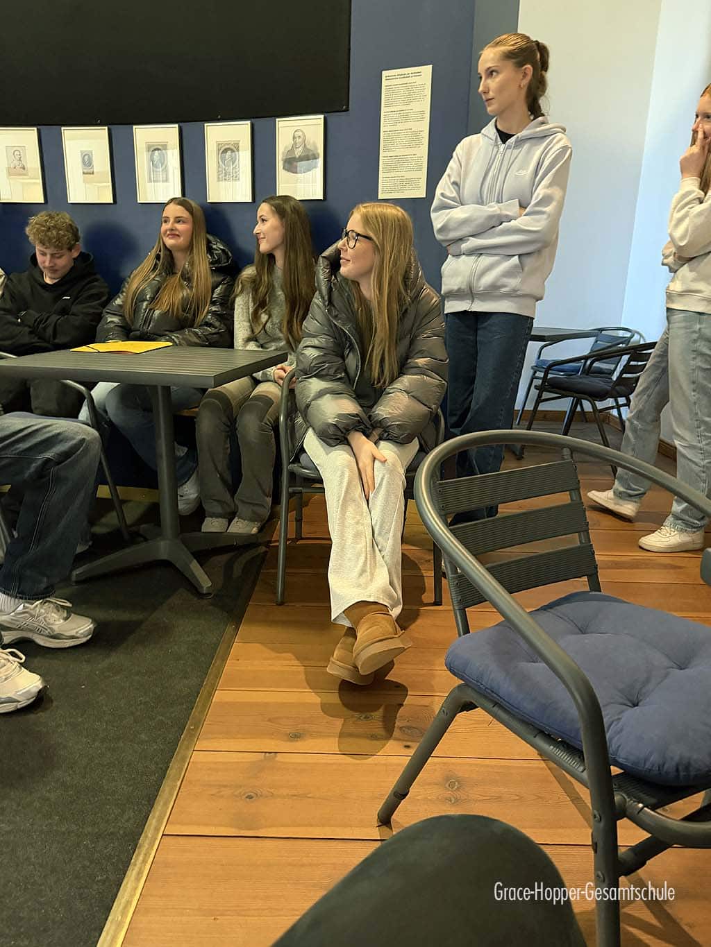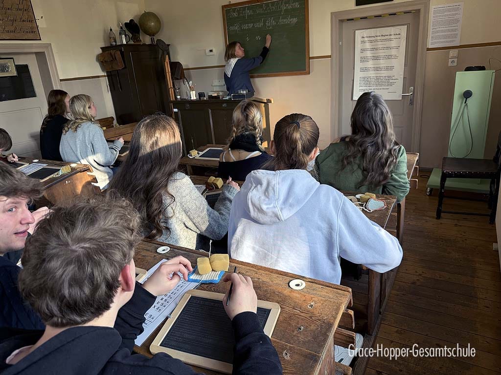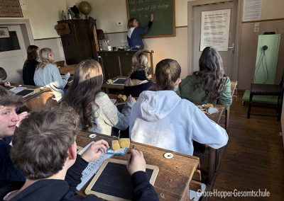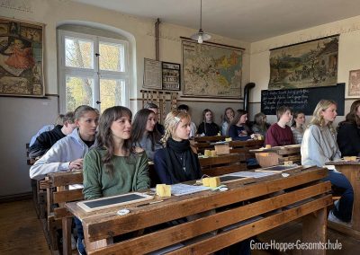 Ein besonderer Höhepunkt des Tages war der Besuch der historischen Dorfschule in Reckahn. Dort erlebten die Schülerinnen und Schüler eine inszenierte Schulstunde des 18. Jahrhunderts, die eindrucksvoll zeigte, wie sich Unterricht, Erziehung und das Menschenbild im Zeitalter der Aufklärung wandelten. So wurde Geschichte nicht nur theoretisch betrachtet, sondern unmittelbar erlebbar gemacht.