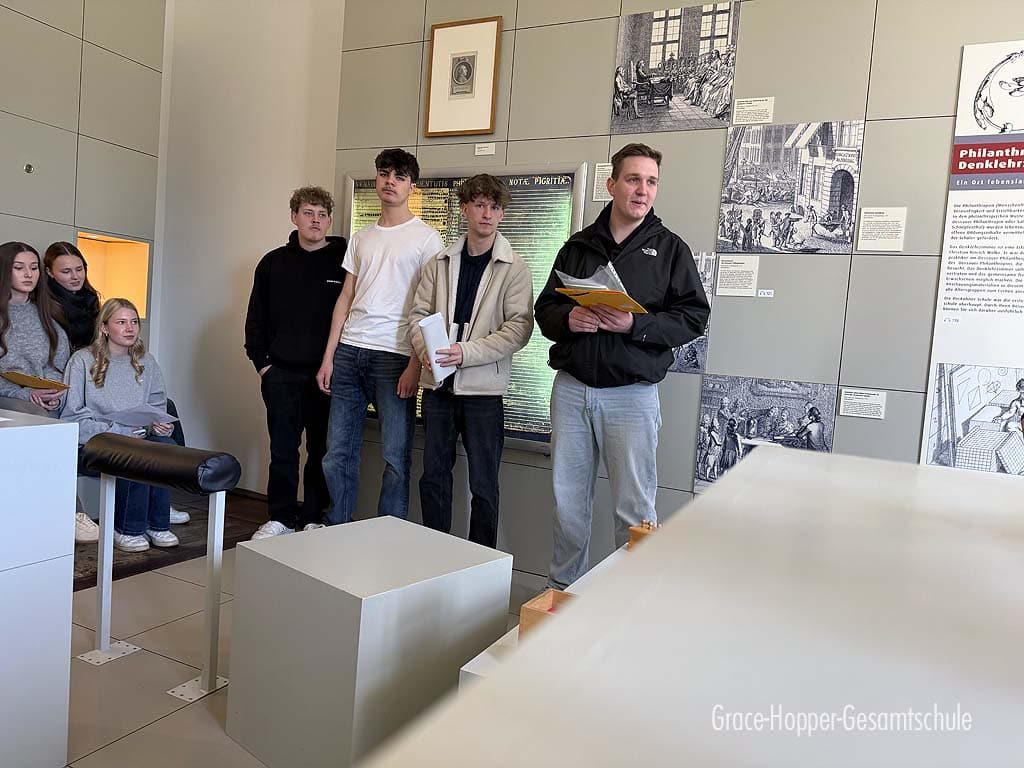 Am 6. März 2026 unternahm der Deutsch-Leistungskurs der Jahrgangsstufe 12 bei Herrn Otto eine Exkursion in das Schloss Reckahn. Im Mittelpunkt stand dabei das Thema Aufklärung, das im Unterricht derzeit eine zentrale Rolle spielt und vor Ort auf besonders anschauliche Weise erfahrbar wurde.