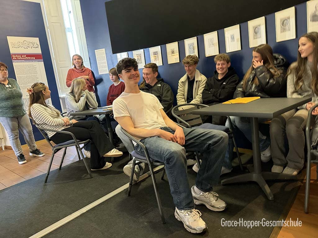 Darüber hinaus setzten sich die Schülerinnen und Schüler in Workshops und Kurzvorträgen mit zentralen Aspekten des aufklärerischen Wirkens von Friedrich Eberhard von Rochow auseinander. Dabei ging es insbesondere um seine Vorstellungen von Bildung, Vernunft, Erziehung und gesellschaftlicher Verantwortung. Deutlich wurde, wie modern viele seiner Gedanken bis heute wirken und wie sehr sie unser heutiges Verständnis von Schule und Lernen geprägt haben.