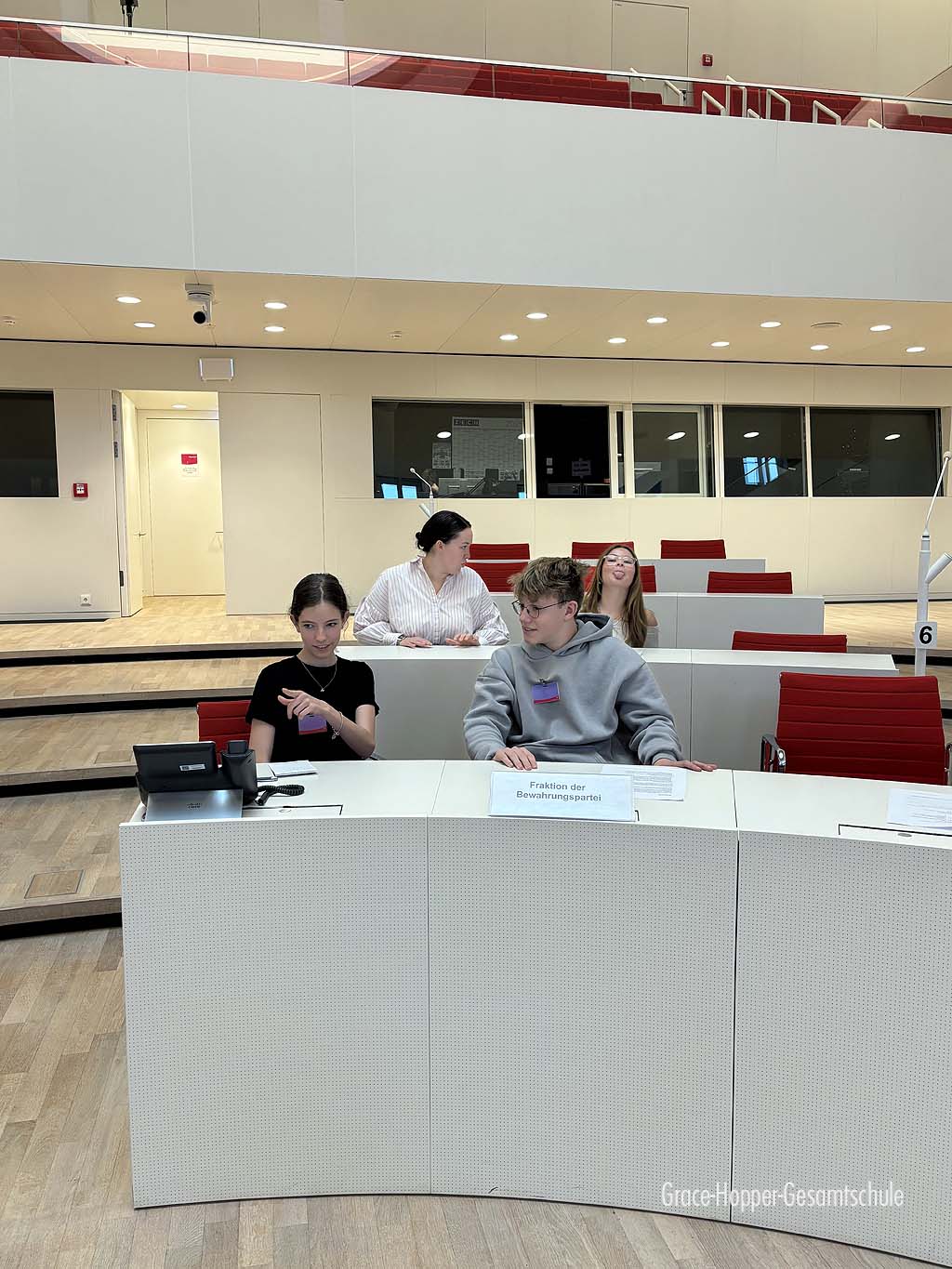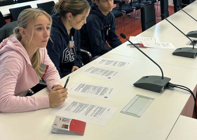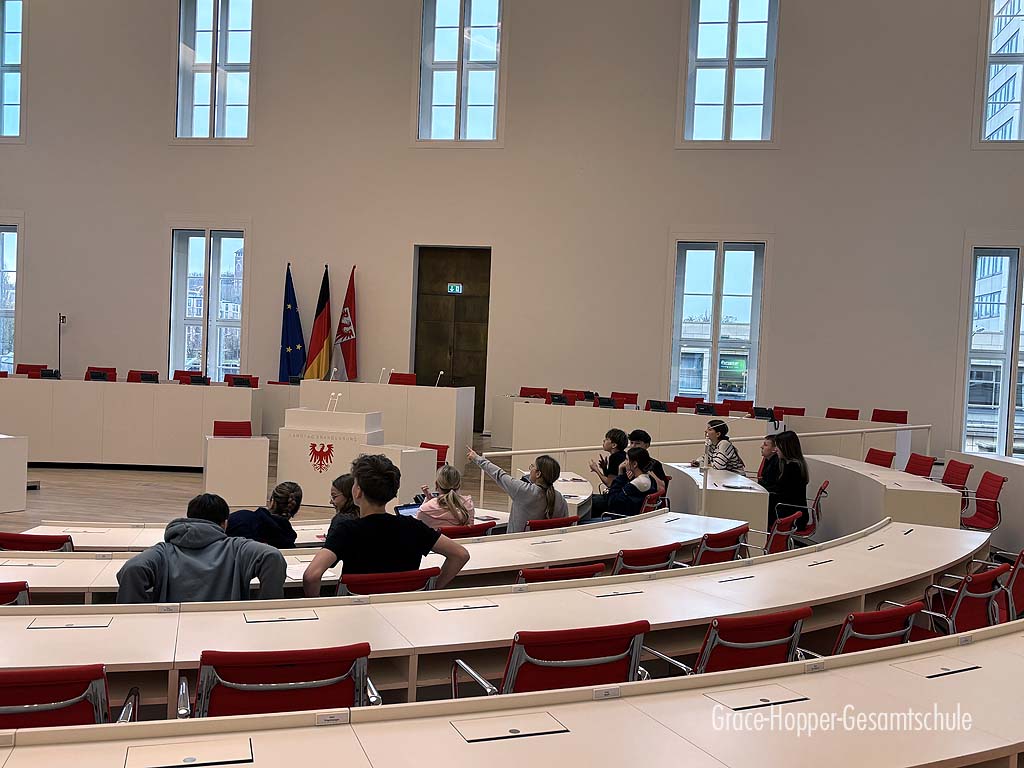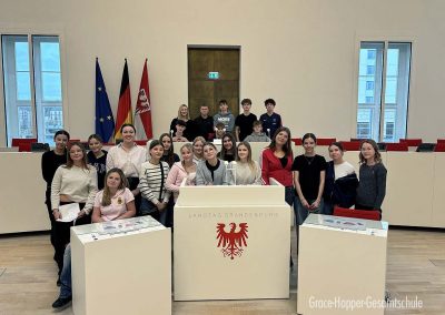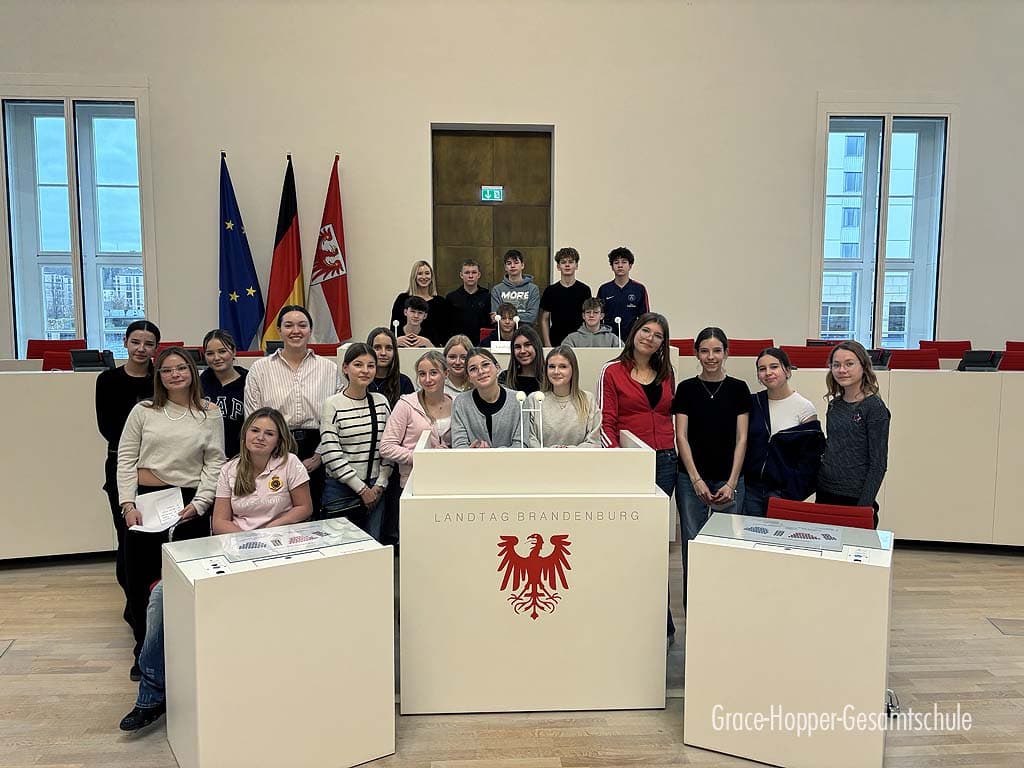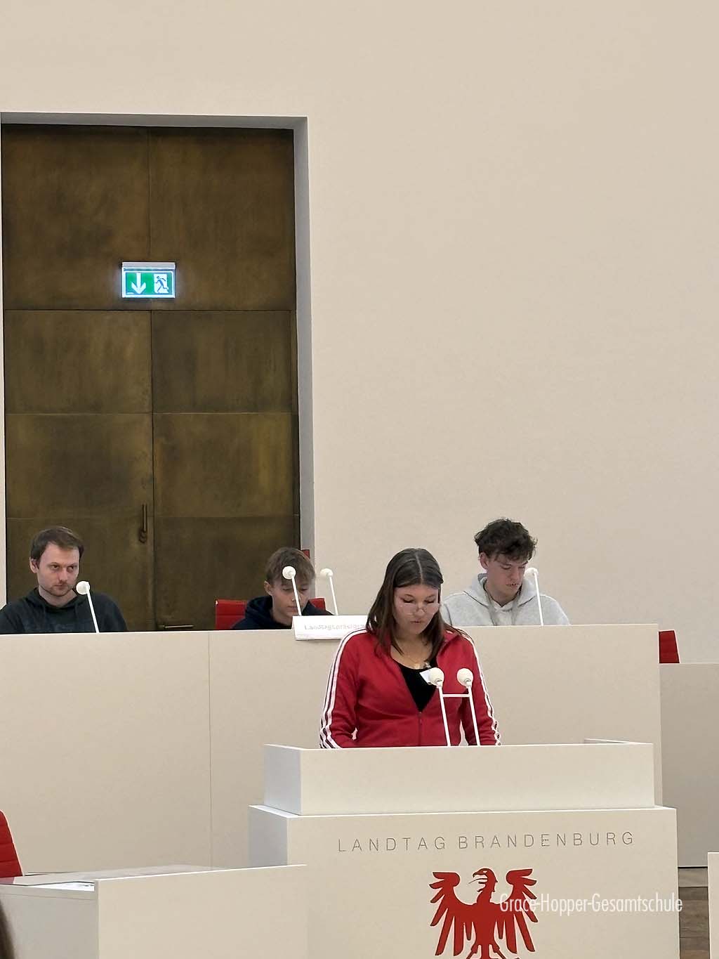 Am 28.11.2025 haben wir, die Klasse 9g, den Landtag Brandenburg besucht und ein Planspiel zum Gesetzgebungsprozess durchgeführt. Nach der Begrüßung und einer kurzen Einweisung wurden wir auch schon in Kleingruppen bzw. Fraktionen eingeteilt. Anschließend durften wir über einen Gesetzesentwurf zum Thema „Alkoholkonsum/-verbot von Jugendlichen“ diskutieren.