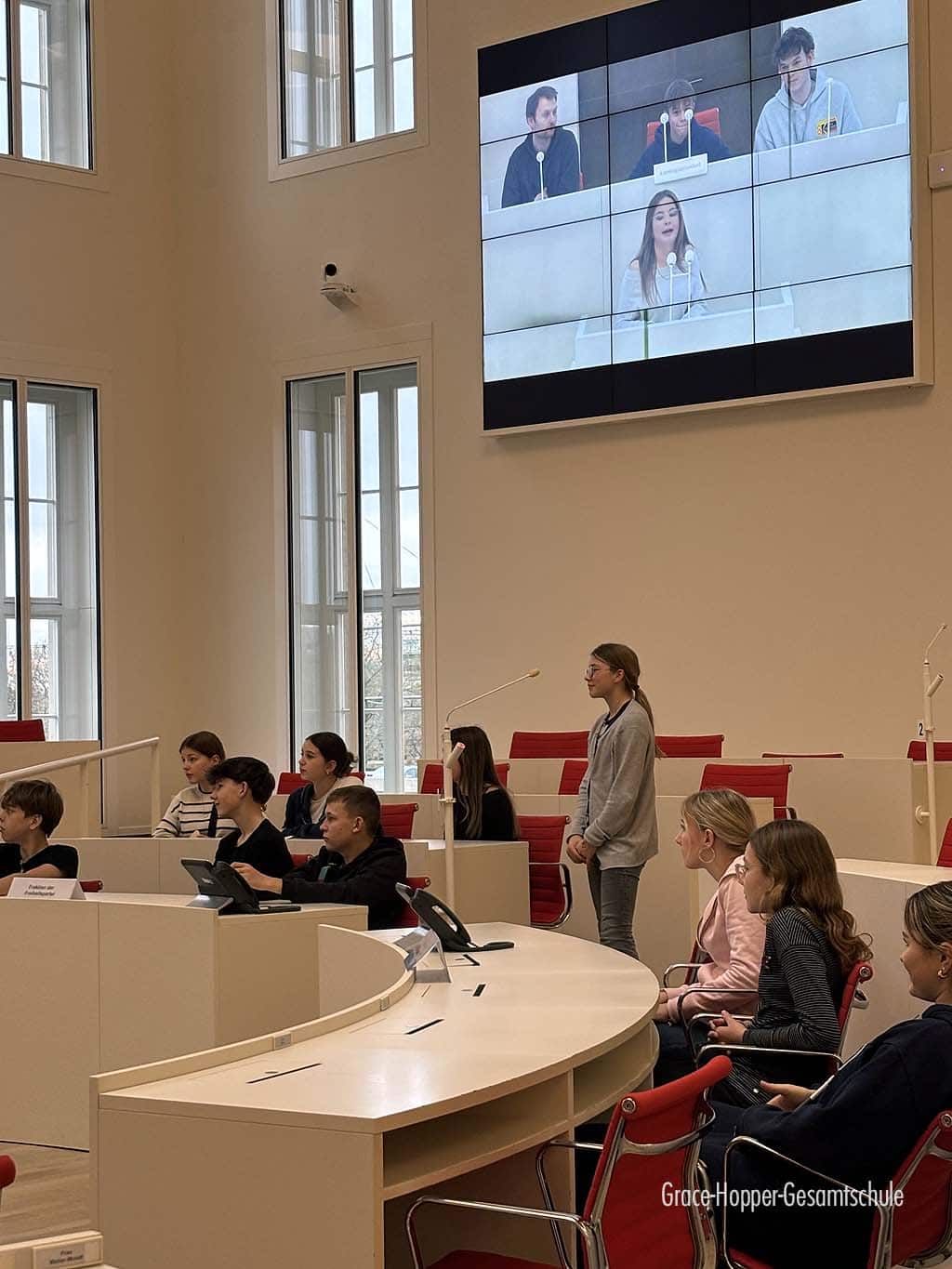 Unsere Highlights des Tages waren die Verhandlungen innerhalb der Ausschüsse und die Reden im Plenarsaal. Zusammenfassend haben wir an diesem Tag viel gelernt und konnten einen guten Einblick in die Arbeit des Landtags gewinnen.