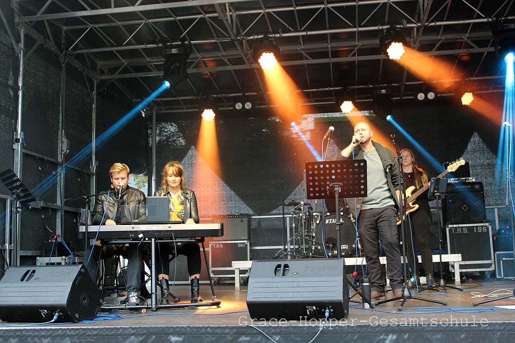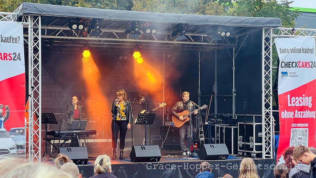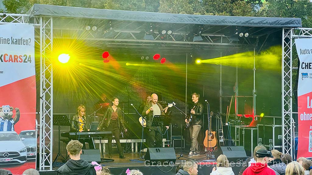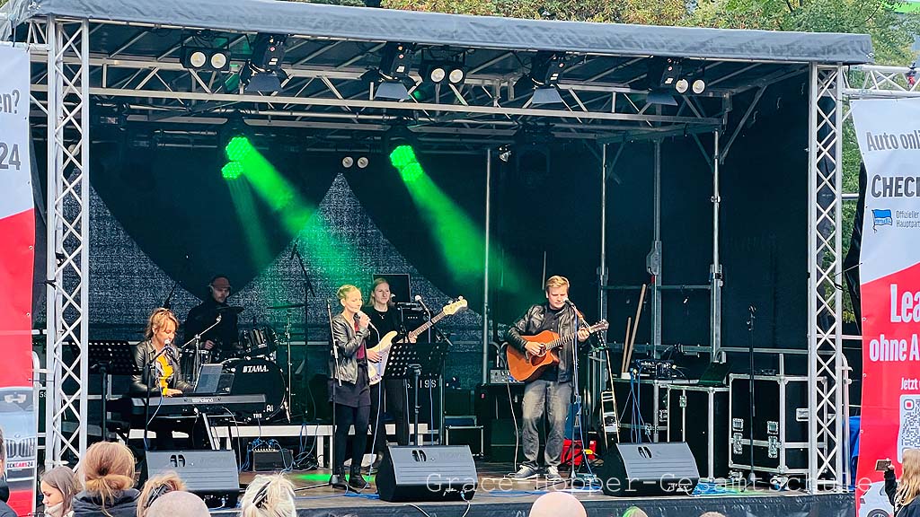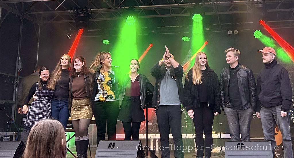 Auch die Gesamtschule Teltow war mit dabei – vertreten durch die Schülerband rund um Luise-Charlotte, Fiona und Chiara, sowie die Lehrerband „Grace Hazard“. Beide Gruppen begeisterten das Publikum und zeigten, dass unsere musikalischen Projekte weit über die Schulgrenzen hinaus Anklang finden.