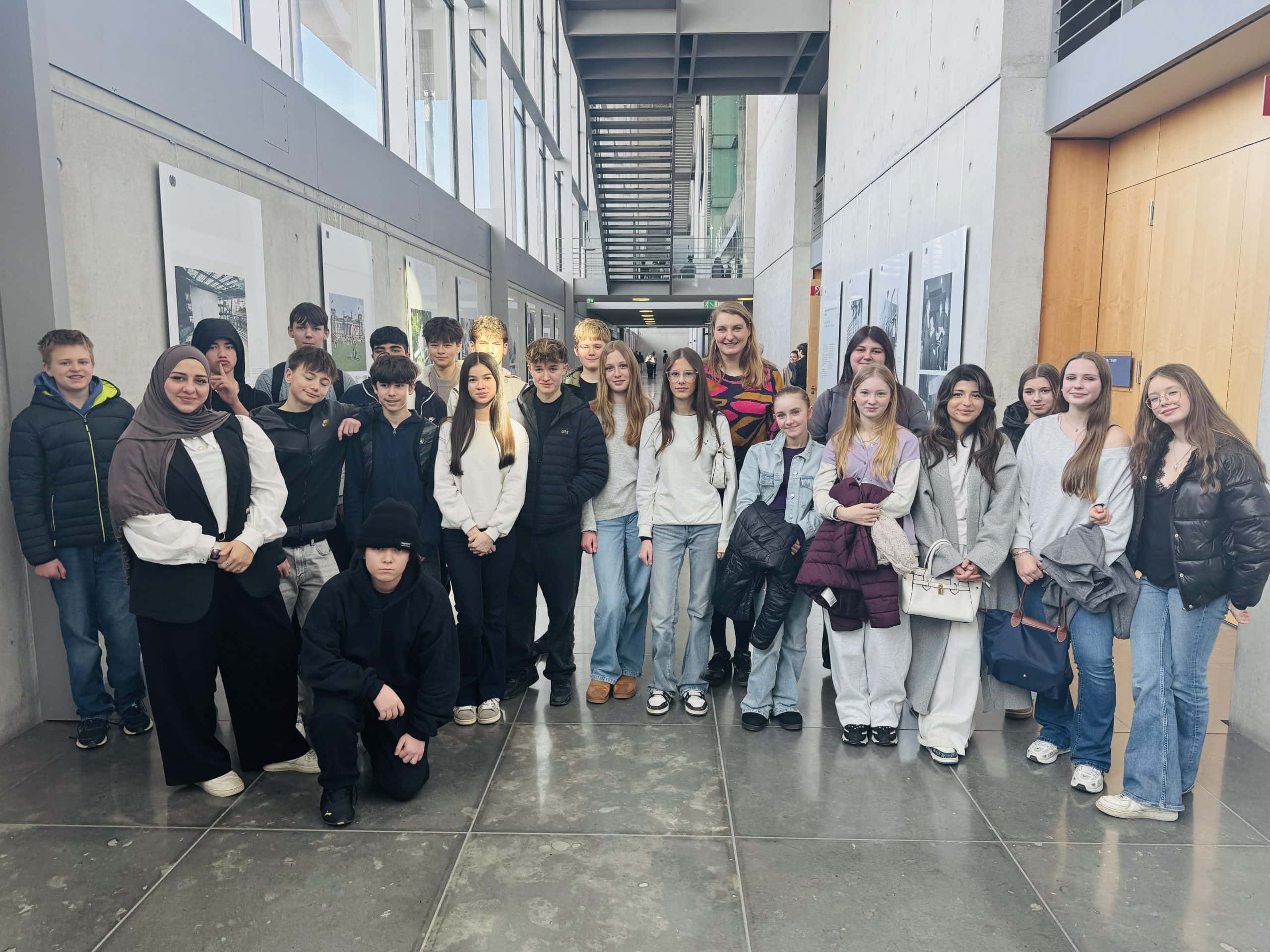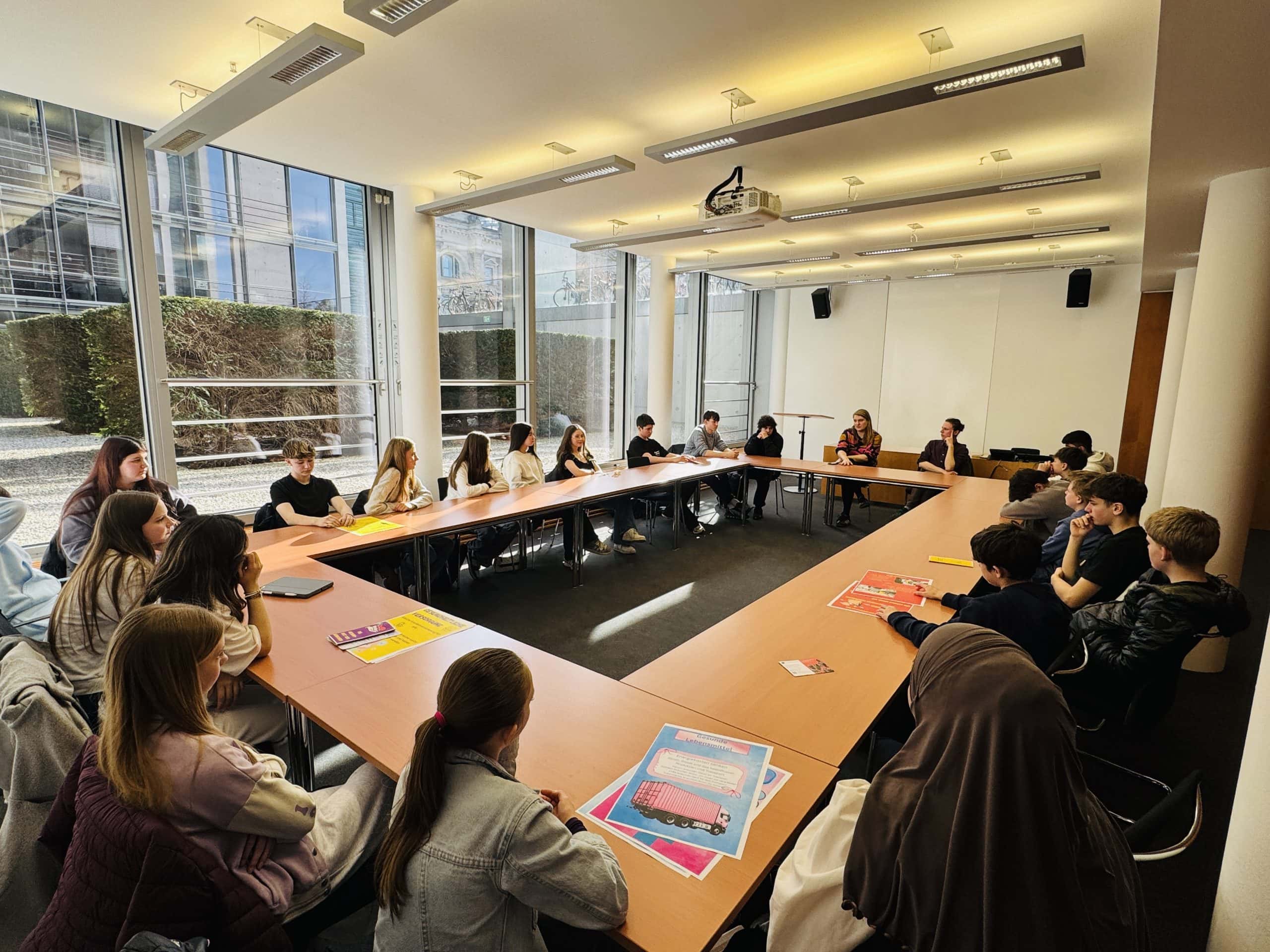 Zum Abschluss der Unterrichtsreihe fand eine Exkursion in den Bundestag statt. Dort hatten die Schülerinnen und Schüler die Gelegenheit, ihre erarbeiteten Ergebnisse politischen Vertreterinnen und Vertretern vorzustellen und mit ihnen über unterschiedliche Perspektiven und Lösungsansätze zu diskutieren.